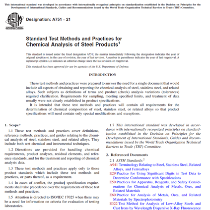 ASTM A751 − 21- Standard Test Methods and Practices for Chemical Analysis of Steel Products